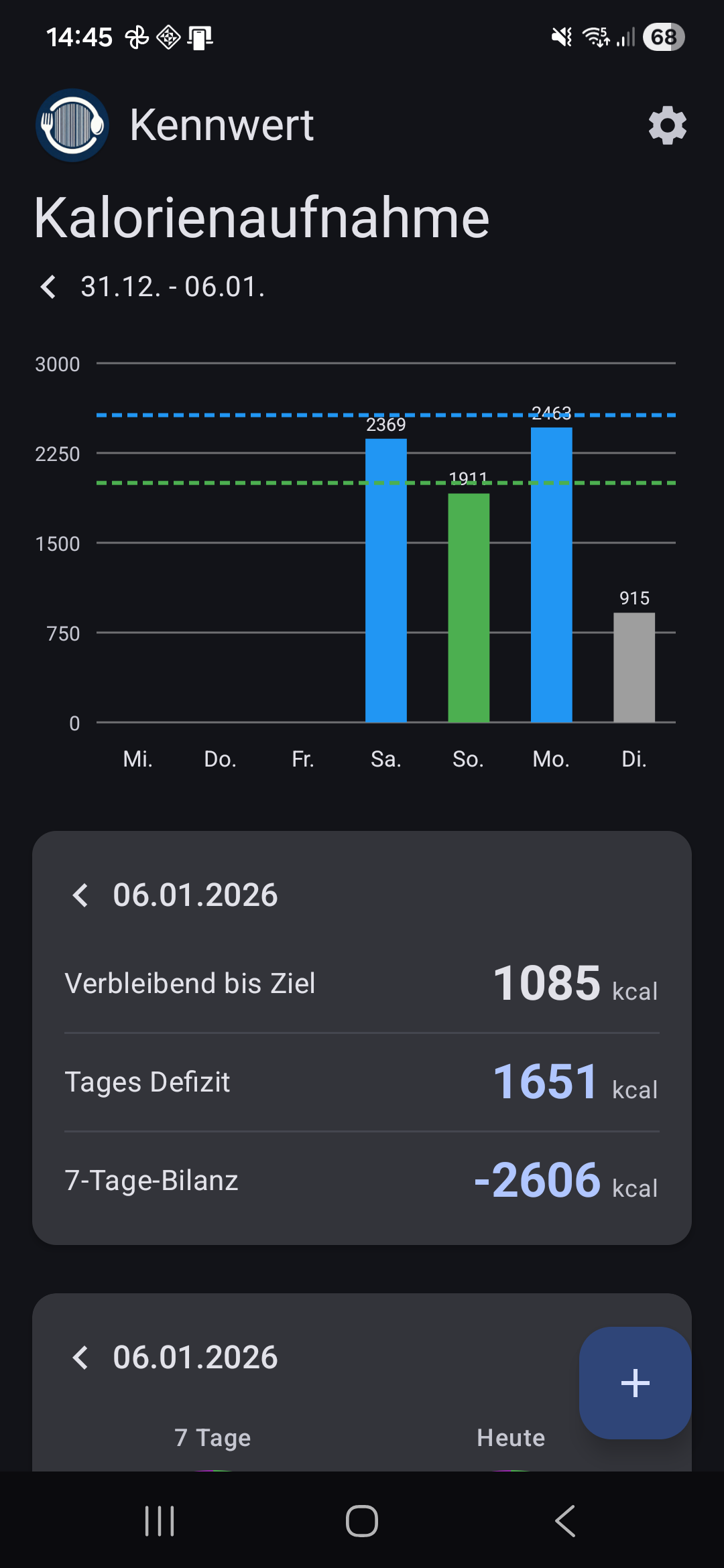 Zugriff auf eine umfangreiche Datenbank. Suche per Barcode oder Text. Erstelle eigene Gerichte.
